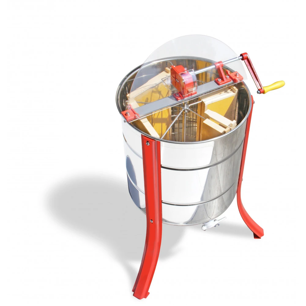 Cage Inox 15 cadres Dadant hausse radiaire ou 5 cadres Lang en Tangenciel, Cuve diamètre 520mm. Couvercle Transparent fixé sur charnières.