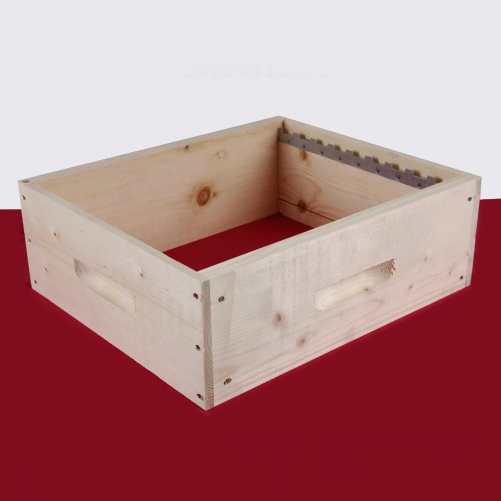 Hausse Ruche Dadant 11 Cadres – Montage mi-bois, vissé sur les quatre faces. Avec crémaillères posées et 1 bande inter-cadre non posée fournie séparément. Fabrication soignée.