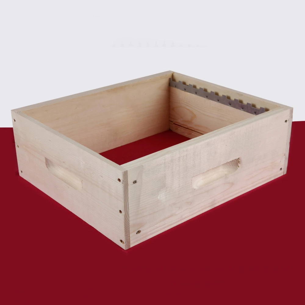Hausse Ruche Dadant 9 ou 8 Cadres Montage mi-bois, vissé sur les quatres faces. Avec crémaillères posées et 1 bande inter-cadre non posée fournie séparément.