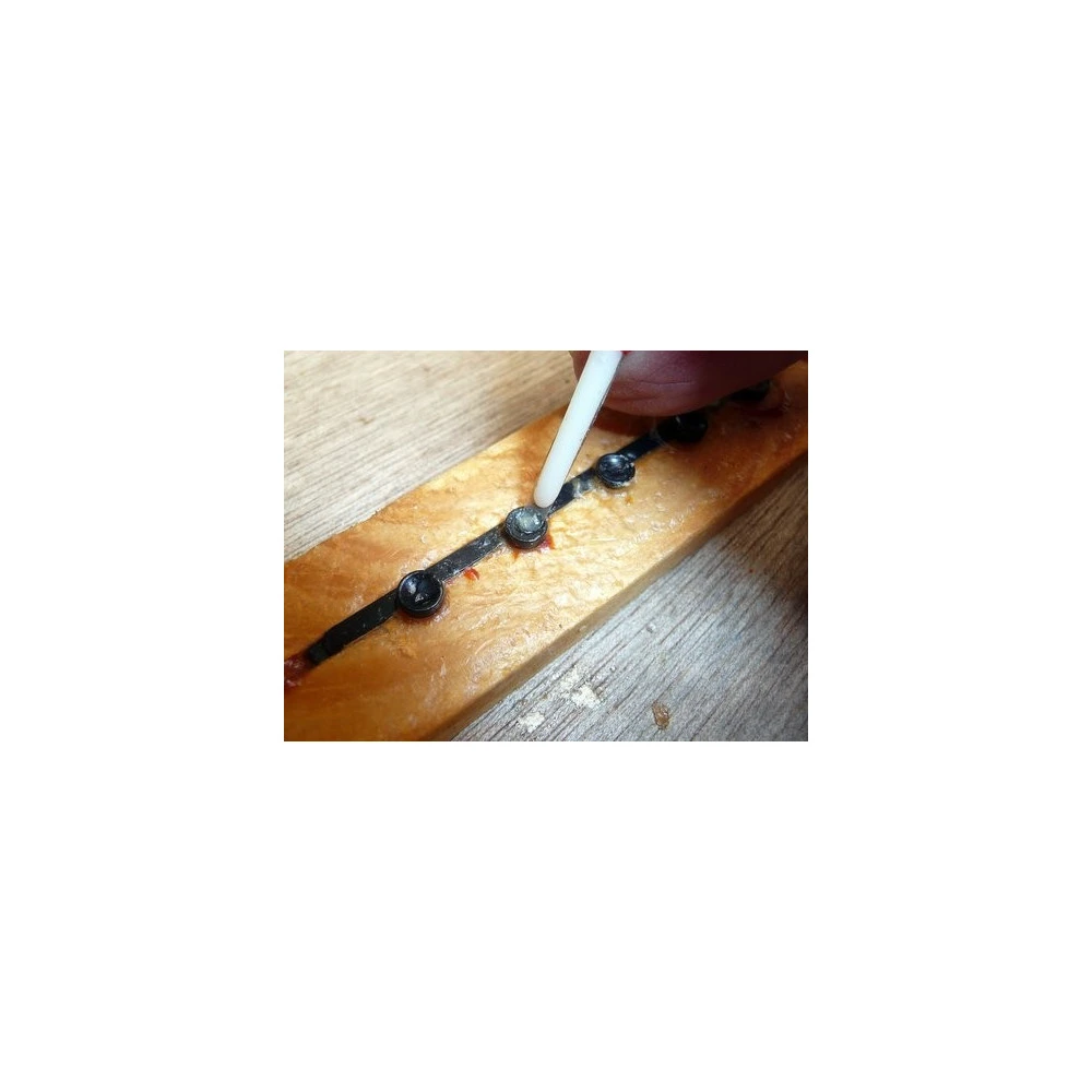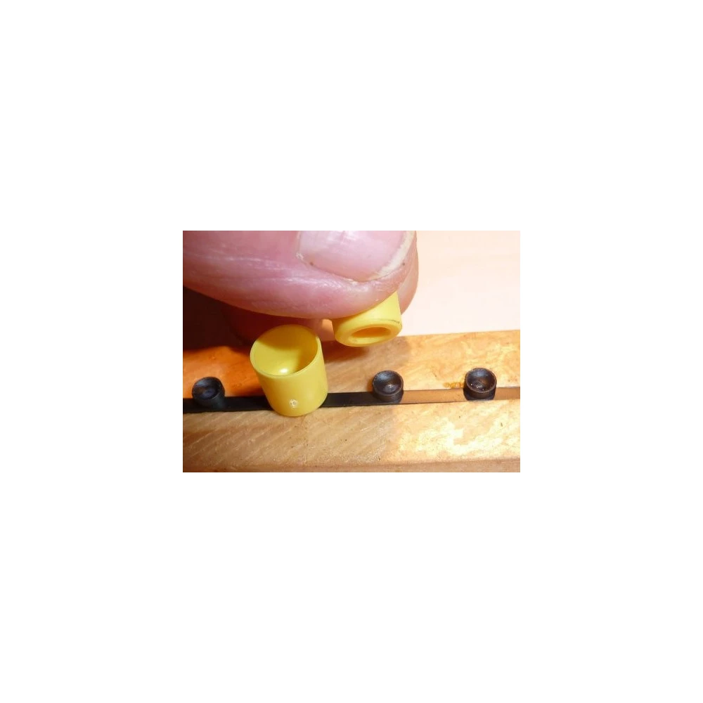 La pièce maîtresse de ce système est une barrette en plastique alimentaire constituée de 5 plots, ou petits cylindres comportant des petites cuvettes d’un diamètre de 5 mm, et correspondant au diamètre du fond des alvéoles d’ouvrières.