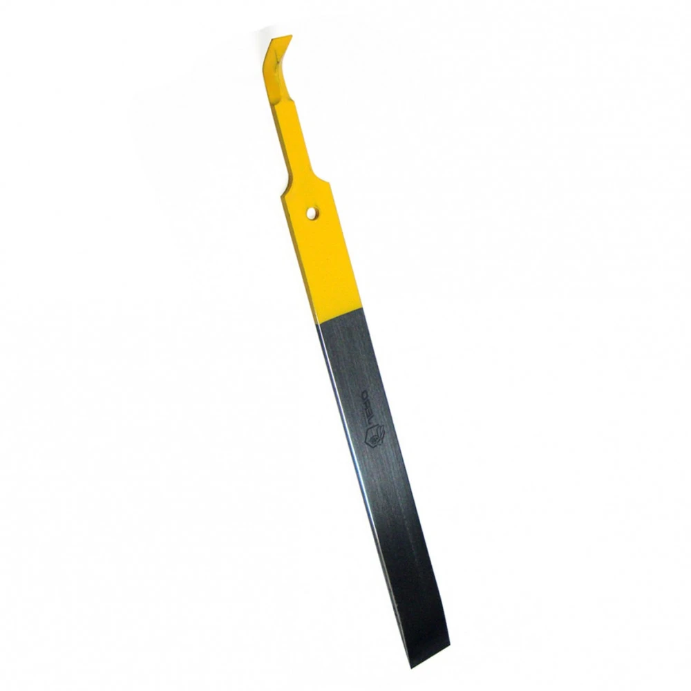 Lève cadre Turbo Jéro. 320 mm le côté plat ouvre la ruche, l’autre côté en forme de pied de biche, décolle et soulève les cadres. Cet outil permet également de nettoyer la propolis dans les rainures des ruches. Très bonne qualité. Acier Inox. Ne rouille pas. Agréable dans la main et très rigide.